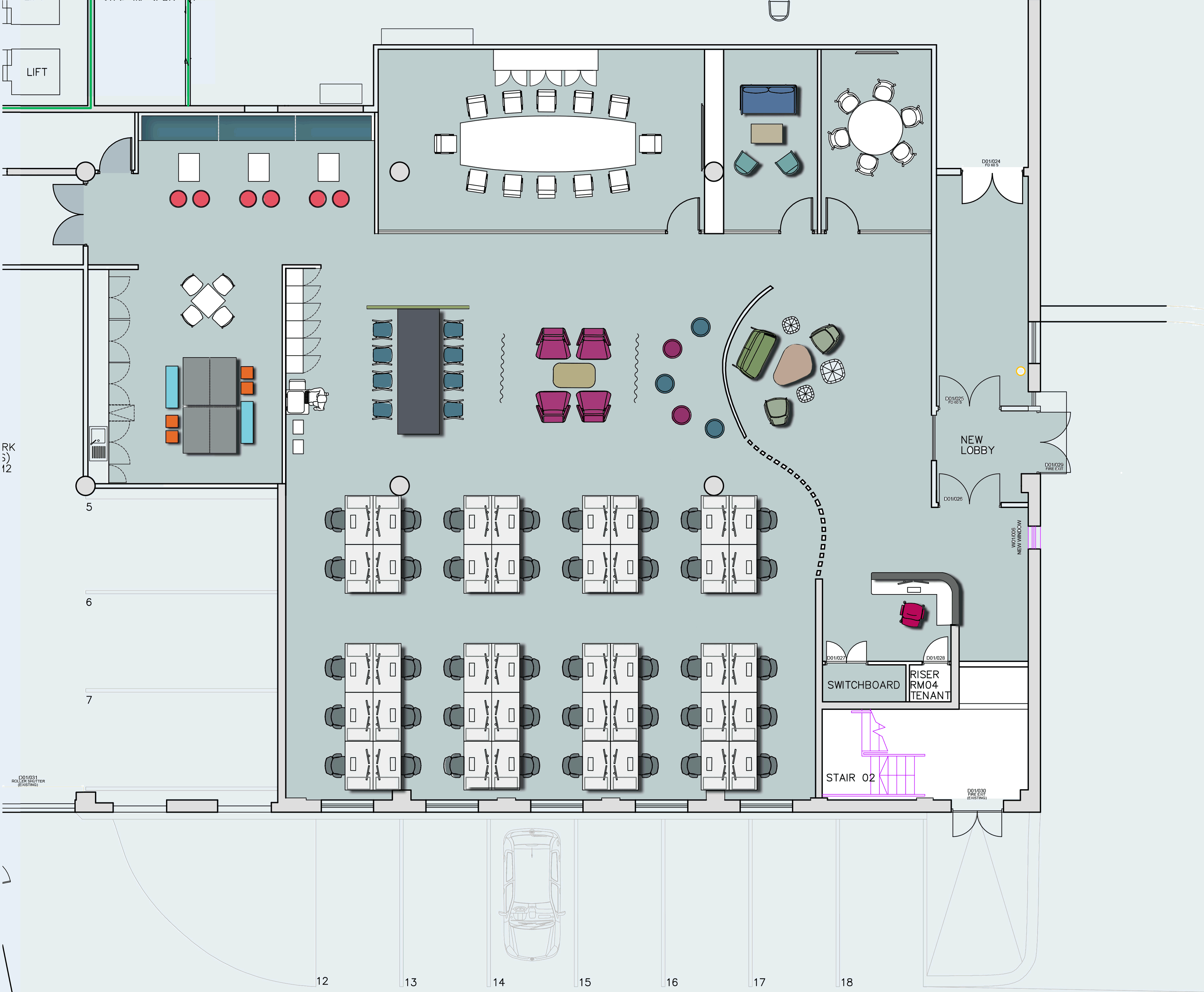 - Extended main reception area with communal seating;